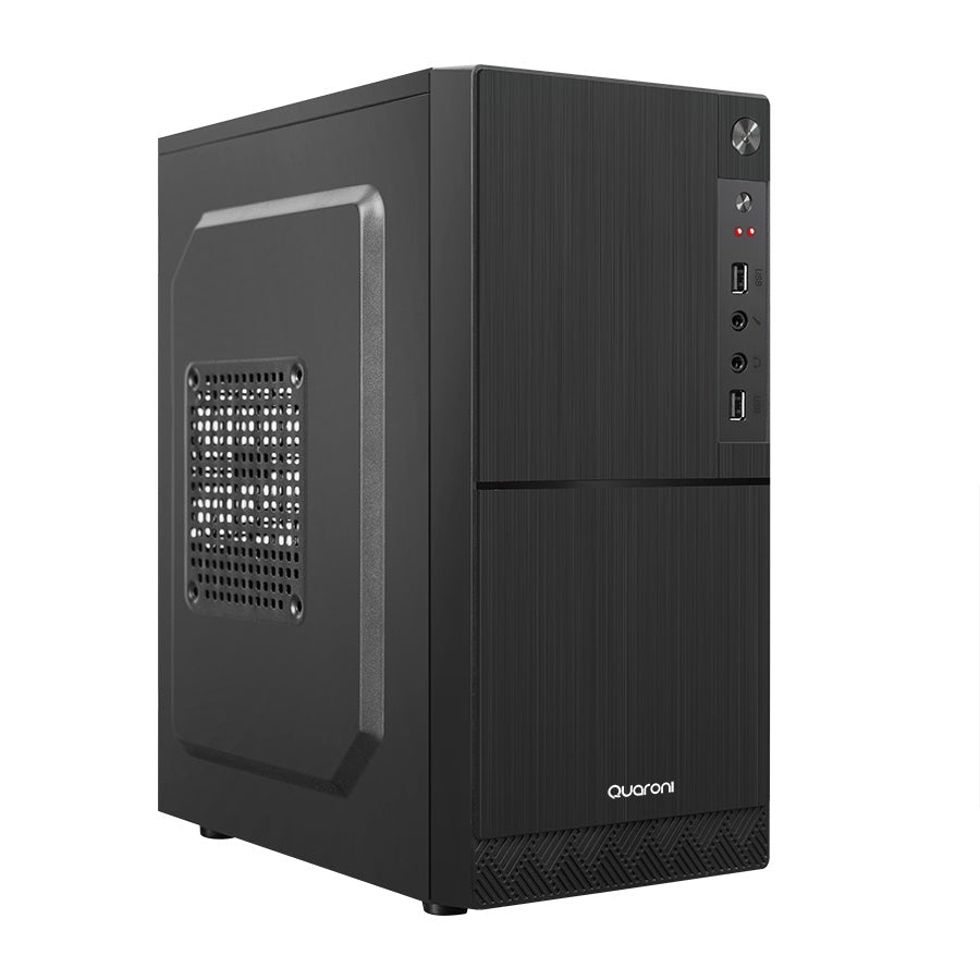 Gabinete Quaroni Frente Abs, Negro Tipo Alumino Cepillado Con Encendido Y Puertos Laterales, Micro Atx, Mini Itx, Fuente De Poder Incluida De 500w