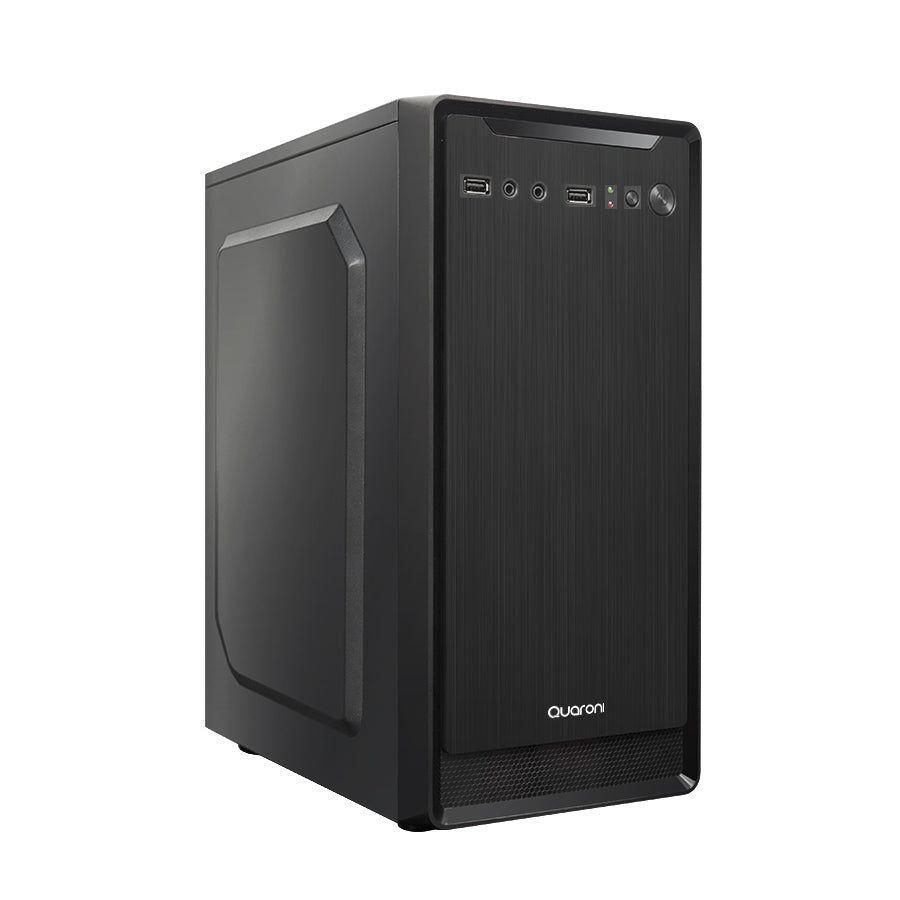 GABINETE QUARONI MINITORRE FRENTE DE ABS NEGRO TIPO ALUMINIO CEPILLADO FACTOR DE FORMA MICRO ATX, MINI ITX FUENTE DE PODER INCLUIDA, ATX DE 500W 2 PUERTOS USB, ENTRADA DE AUDIO ESPACIO PARA DISCOS DUROS SSD Y/O HDD; 1 BAHIA DE 3.5 PULG Y 2 BAHIAS DE 2.5 PULG 4 RANURAS PCI ESPACIO PARA UNA TARJETA DE VIDEO DE HASTA 250MM ESPACIO PARA UN DISIPADOR DE HASTA 140 MM ESPACIO PARA MANEJO DE CABLES 20MM ESPACIO PARA HASTA 3 VENTILADORES (1 LATERAL DE 120MM, 1 FRONTAL DE 120MM Y UNO TRASERO DE 80MM) TAMAñO GABINETE (LARGO: 295MM ANCHO: 165MM ALTO: 350MM) PESO NETO (2KG)