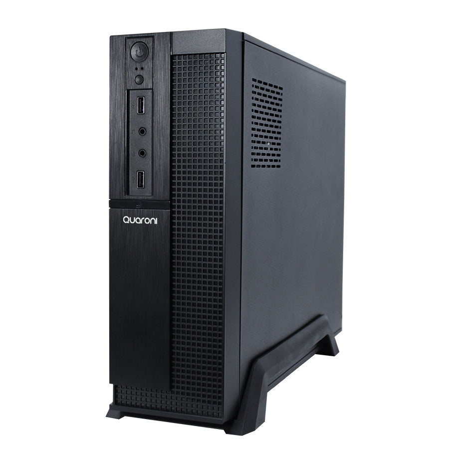 Gabinete Slim Quaroni, Micro Atx, Mini Itx, Fuente De Poder 500w, Color Negro Acabado Cuadriculado