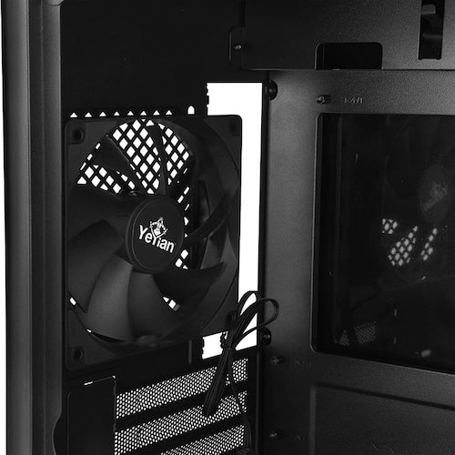 | Espacio para Ventiladores | Puertos de ventilador de 3x120 mm o 3x140 mm en la parte frontal (ventilador ARGB de 3x120 mm incluido) Puertos de ventilador de 3x120 mm o 2x140 mm en la parte superior (opcional) Puerto de ventilador de 1x120 mm en la parte trasera (ventilador ARGB PWM de 1x120 mm incluido) Puertos de ventilador de 2x120 mm en la cubierta de la fuente de alimentación (opcional) |