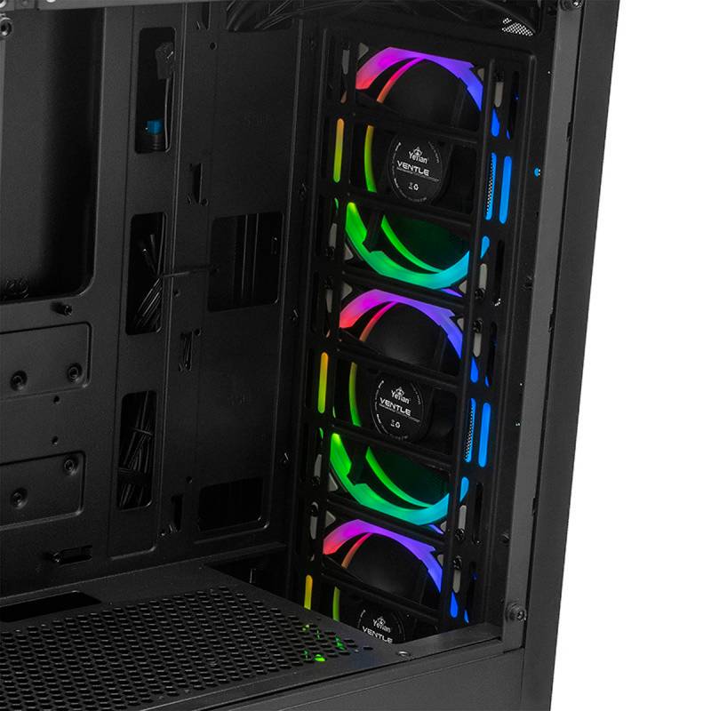 El Gabinete Yeyian Gaming Ventle Serie Master con espacio para capacidad de expansión ofrece multiples opciones para una experiencia de juego única, perfecta e ideal para tu configuración.El Gabinete Gaming Ventle está fabricado con metal SPCC de 0.5 mm, junto con vidrio templado en el panel para un diseño elegante y moderno.