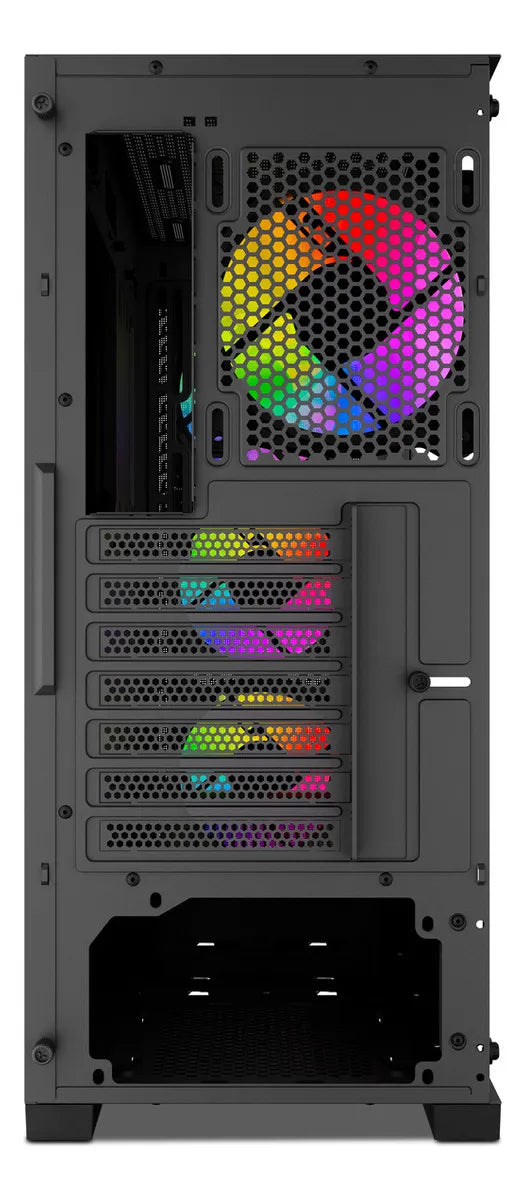 El Yeyian Vault viene con cuatro ventiladores ARGB preinstalados, tres en el frente y uno en la parte trasera. No solo mantienen tus componentes frescos, sino que también crean un show de luces increíble que puedes controlar con un simple botón. Con espacio para hasta ocho ventiladores en total, tienes todo el potencial para un flujo de aire masivo y una refrigeración superior.