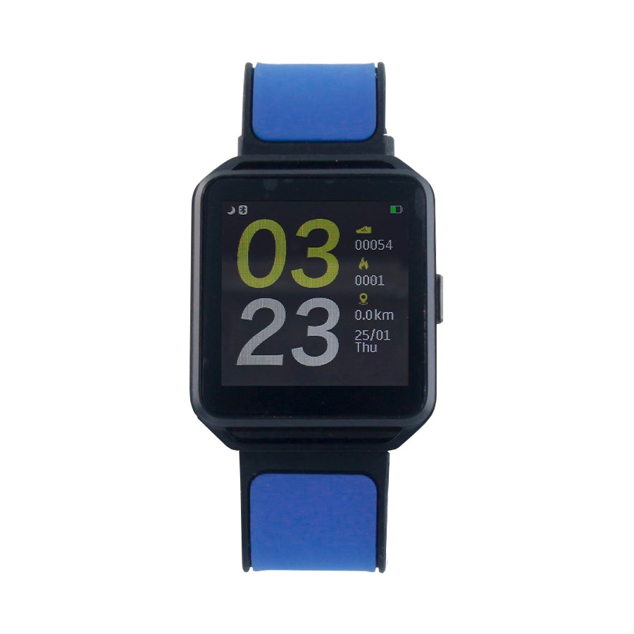 FUNCIONES: MEDICION DE FRECUENCIA CARDIACA, MONITOR DE SUENO, RECORDATORIO DE SEDENTARIEDAD, DISTANCIA, CALORIAS, CONTROL REMOTO DE CÁMARA, RECORDATORIO DE LLAMADA. PANTALLA: 1.54 PULGADAS, LCD DE 240 X 240 PIXELES.// CONEXION: BLUETOOTH 4.0.// EMPAQUE: 1 SMART WATCH, 1 CABLE MICRO USB, 1 MANUAL DE USUARIO.// ESPECIFICACIONES: RELOJ COLOR NEGRO/AZUL, BATERA DE LITIO, 230 MAH.// DIMENSIONES: ALTURA 4.89 CM, LARGO 4.12 CM, PROFUNDIDAD 1.09 CM.// PLATAFORMA: IOS Y ANDROID,// PROCESADOR: ARM MO 32 BIT