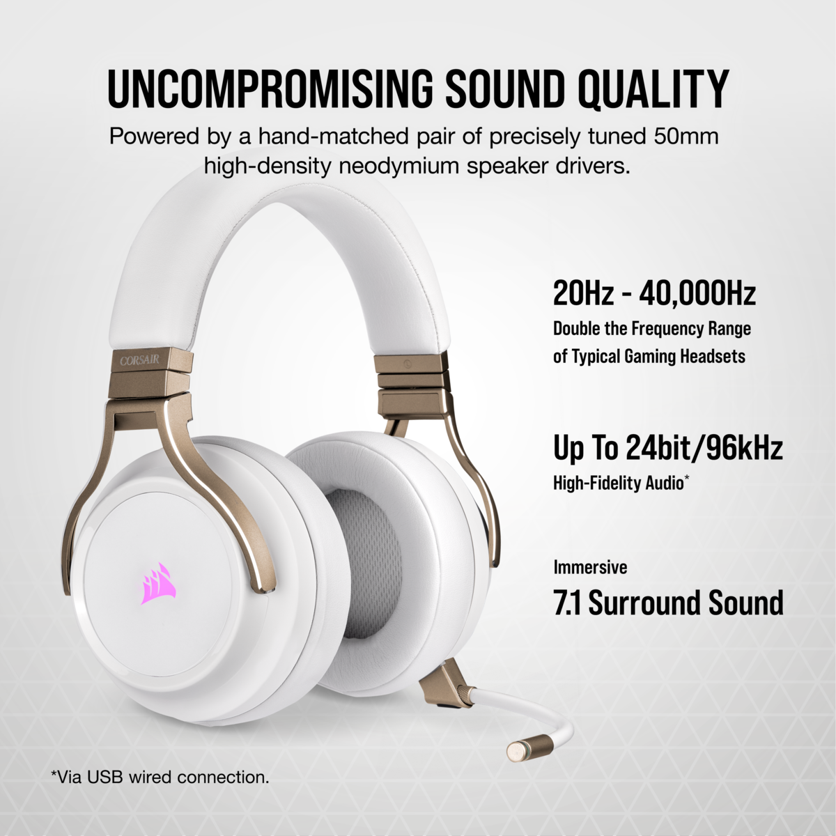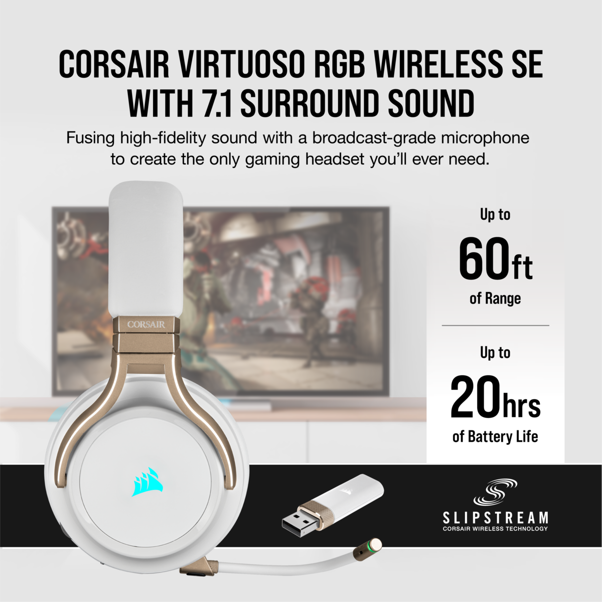 Los CORSAIR VIRTUOSO RGB Wireless ofrecen una experiencia de sonido de alta fidelidad y una comodidad continua gracias a las orejeras de espuma con memoria premium y una conectividad hiperrápida con tecnología SLIPSTREAM WIRELESS.