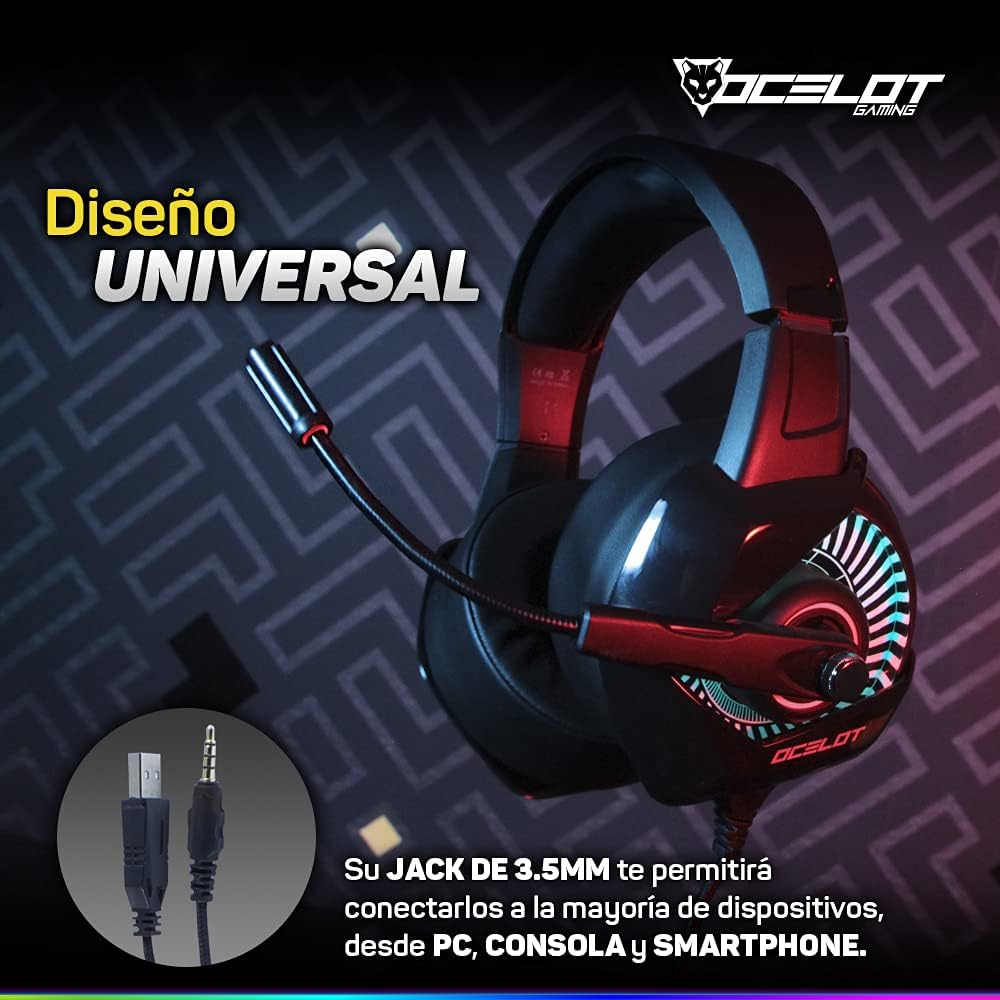 Headsets Gamer OGMH01. Tipo Diadema Over-Ear, Alámbricos, Iluminación Tipo RGB, Micrófono con cancelación de Ruido. Multiplataforma, Adaptador de 2 Puntas