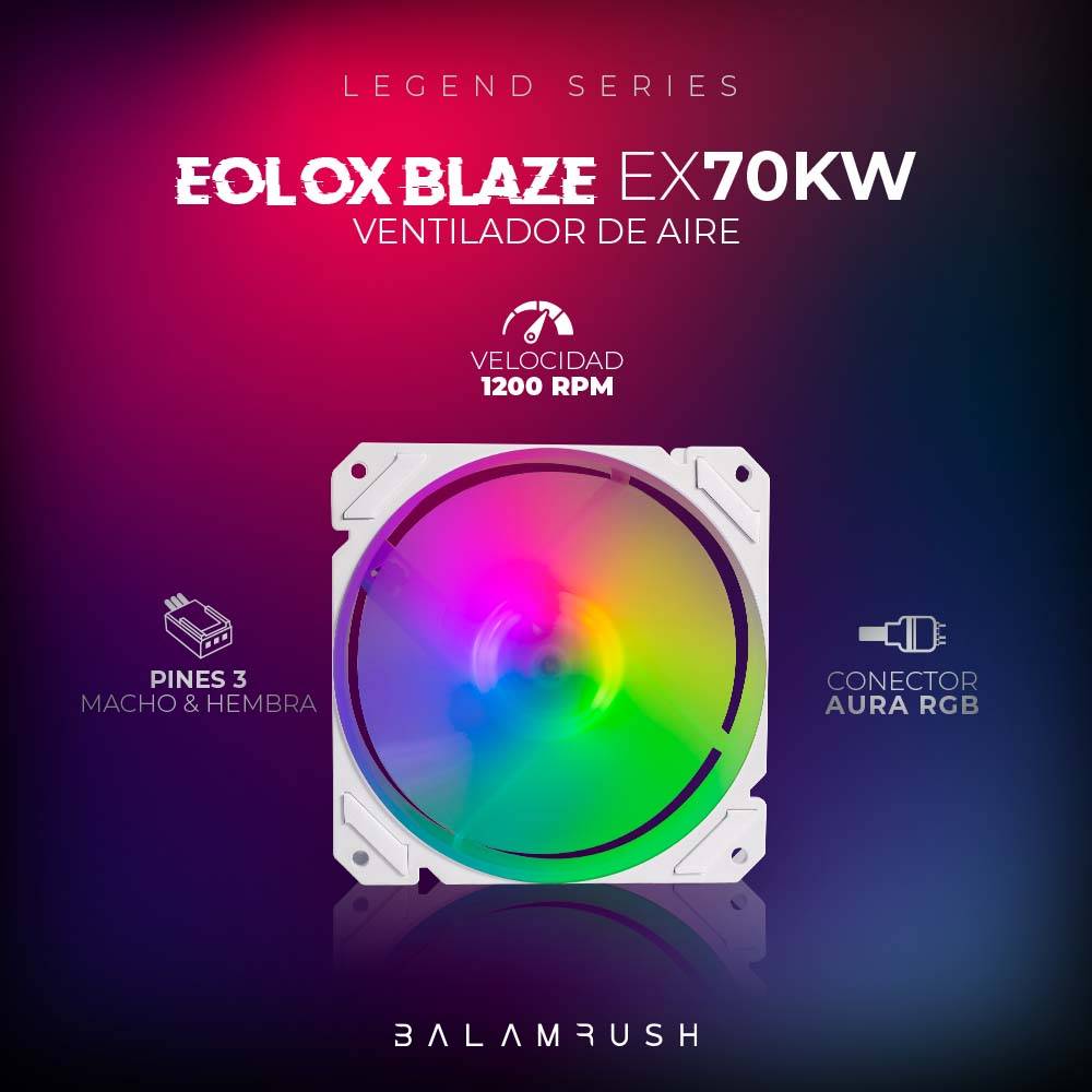 Kit 3 Ventiladores de 120mm ARGB Balam Rush Eolox Blaze EX70KW: Velocidad: 1200 Rpm Flujo de aire: 30.71 CFM -