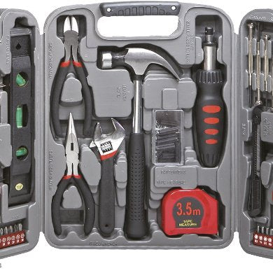ESPECIFICACIONES - CONTENIDO: 129 PIEZAS. - PRECAUCION: PUEDE CONTENER PIEZAS PUNZCORTANTES. FEATURES - KIT DE HERRAMIENTAS PARA CASA, CON 129 PIEZAS. - ESTUCHE COLOR GRIS Y HERRAMIENTAS COLOR NEGRO CON DETALLES ROJO. CONTENIDO: - MARTILLO DE OREJAS DE 8 OZ. - CORTADOR DIAGONAL DE 6 PULGADAS. - ALICATES DE PUNTA LARGA DE 6 PULGADAS - LLAVE AJUSTABLE DE 6 PULGADAS - PELACABLES/CRIMPEADORA DE 8 PULGADAS. - CONDUCTOR DE TRINQUETE. - CUCHILLO DESECHABLE DE HOJA A PRESION. - 4 DESTORNILLADORES DE PRECISION: RANURADO (1.5, 2.0 MM). PHILLIPS (#0, #00). NIVEL TORPEDO DE 9 PULGADAS CINTA METRICA DE 12 PIES. - 16 LLAVES HEXAGONALES: SAE (1/16, 5/64, 3/32, 1/8, 5/32, 3/16, 7/32, 1/4). MÉTRICO (1.5, 2.0, 2.5, 3.0, 4.0, 5.0, 5.5, 6.0 MM). - 20 PUNTAS: RANURADO (1/8, 3/16, 1/4, 5/16). CUADRADO (S1, S2, S3). PHILLIPS (#0, #1, #2, #3). TORX (T2, T5, T10, T15, T20). HEXAGONAL (1/8, 5/32, 3/16 Y 1/4). - 2 PORTA PUNTAS. - MALETIN CON SUJETADORES DE HERRAMIENTA.