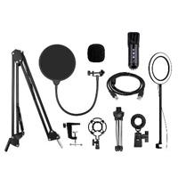 Kit De Microfono De Condensador Profesional Brobotix, Control De Volumen, Usb, Incluye Soporte De Brazo Ajustable De Suspension, Tripie Y Aro De Luz