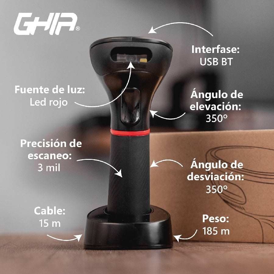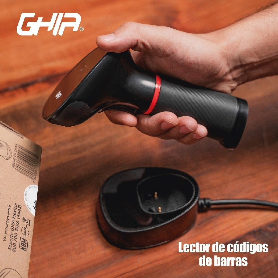 Lector De Codigos De Barras Ghia 2d Inalambrico, Receptor Usb, Bluetooth, Base De Carga, Compatible Con Qr