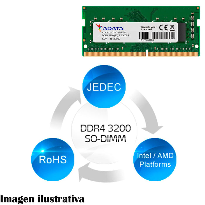 Memoria Ddr4 Adata 8gb 3200mhz Sodimm (Ad4s32008g22-Sgn)