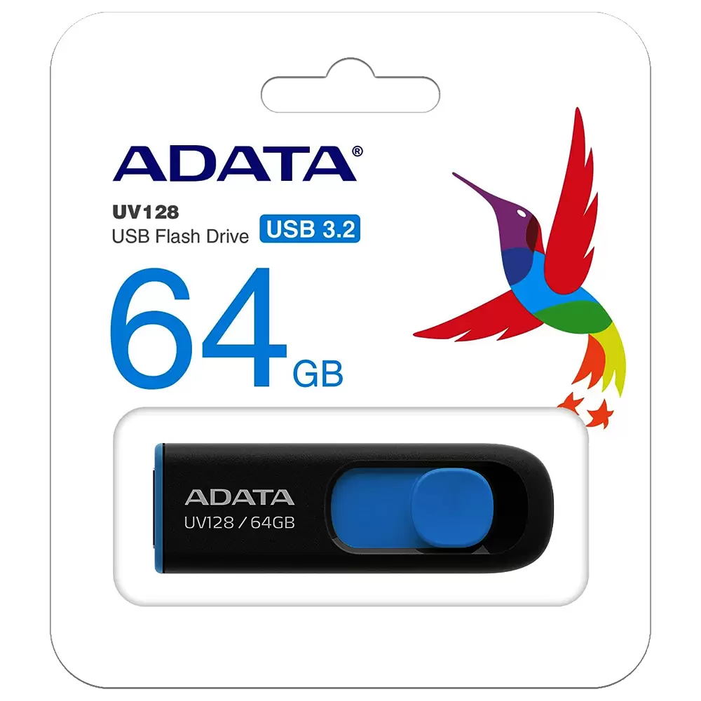 MEMORIA FLASH ADATA UV128 64GB USB 3.0 NEGRO/AZUL (AUV128-64G-RBE)