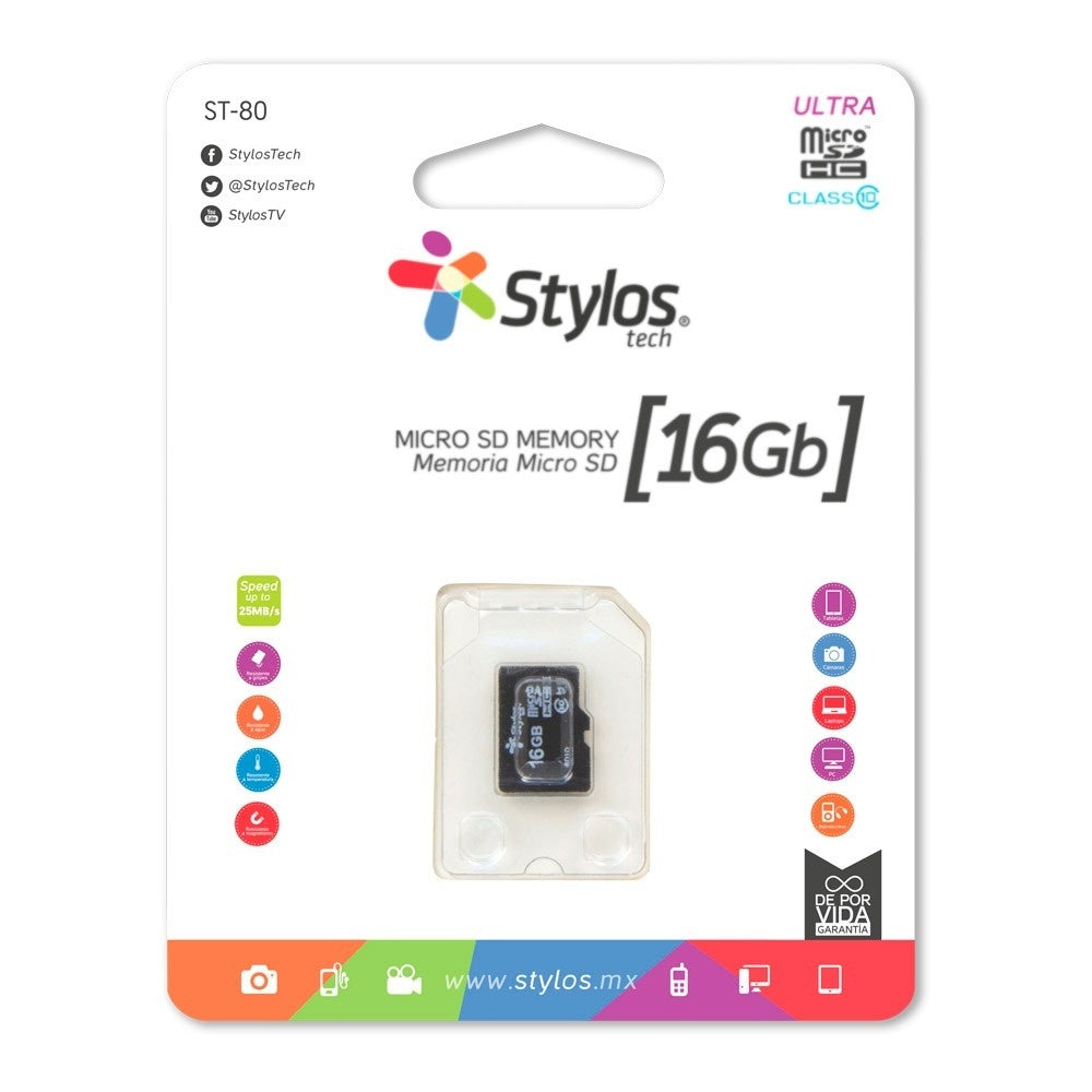 Memoria Micro Sd Stylos 16gb S/A Clase 10 (Stmsds2b)