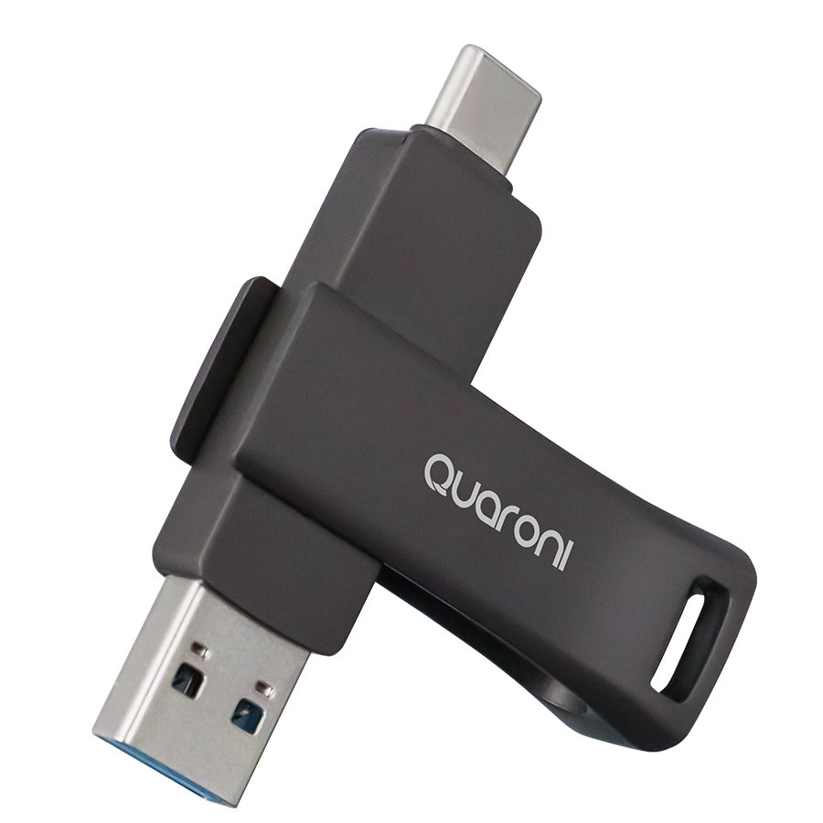 Memoria USB Quaroni 64 GB. Puerto dual USB A y USB C, OTG, cuerpo metálico