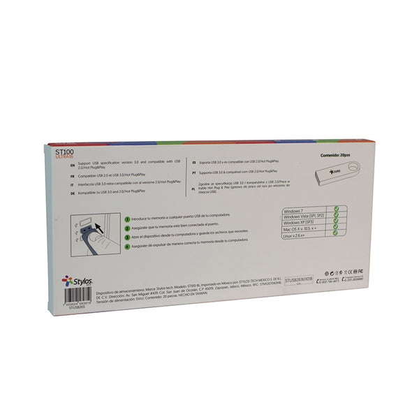 Memoria Usb Stylos 16gb Flash 2.0 Plata, Pack 20 (Stusb2016)