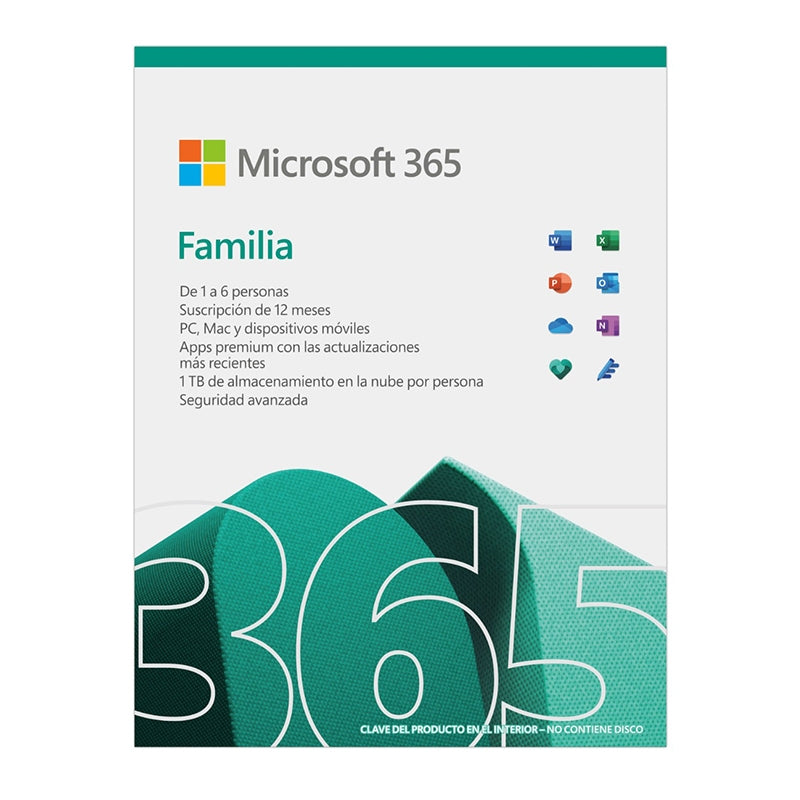 Microsoft 365 Familia incluye hasta 6 TB de almacenamiento en la nube (1 TB por persona), características de seguridad avanzada y aplicaciones innovadoras para ti y tu familia, todo en un solo plan.