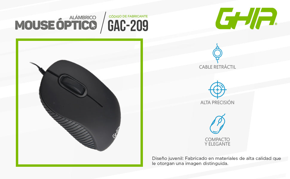 3 BOTONES CONECCIÓN: USB RESOLUCIÓN: 1000 DPI LONGITUD DEL CABLE: 70 cm COMPATIBILIDAD: Windows® y iOS®.