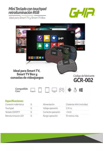 Mini Teclado Inalambrico Ghia Con Touch Pad Para Smart Tv, Tv Smart Box Y Pc