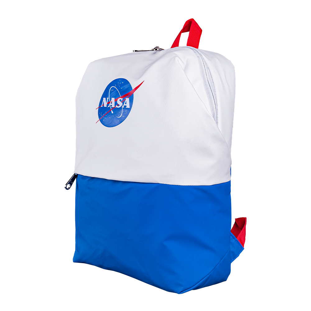 El estilo urbano y moderno se refleja en los colores principales disponibles: azul y blanco; ambos combinados con detalles en color NASA que le dan un toque distintivo a la mochila. La imagen impresa sobre el material añade otro elemento visual interesante.