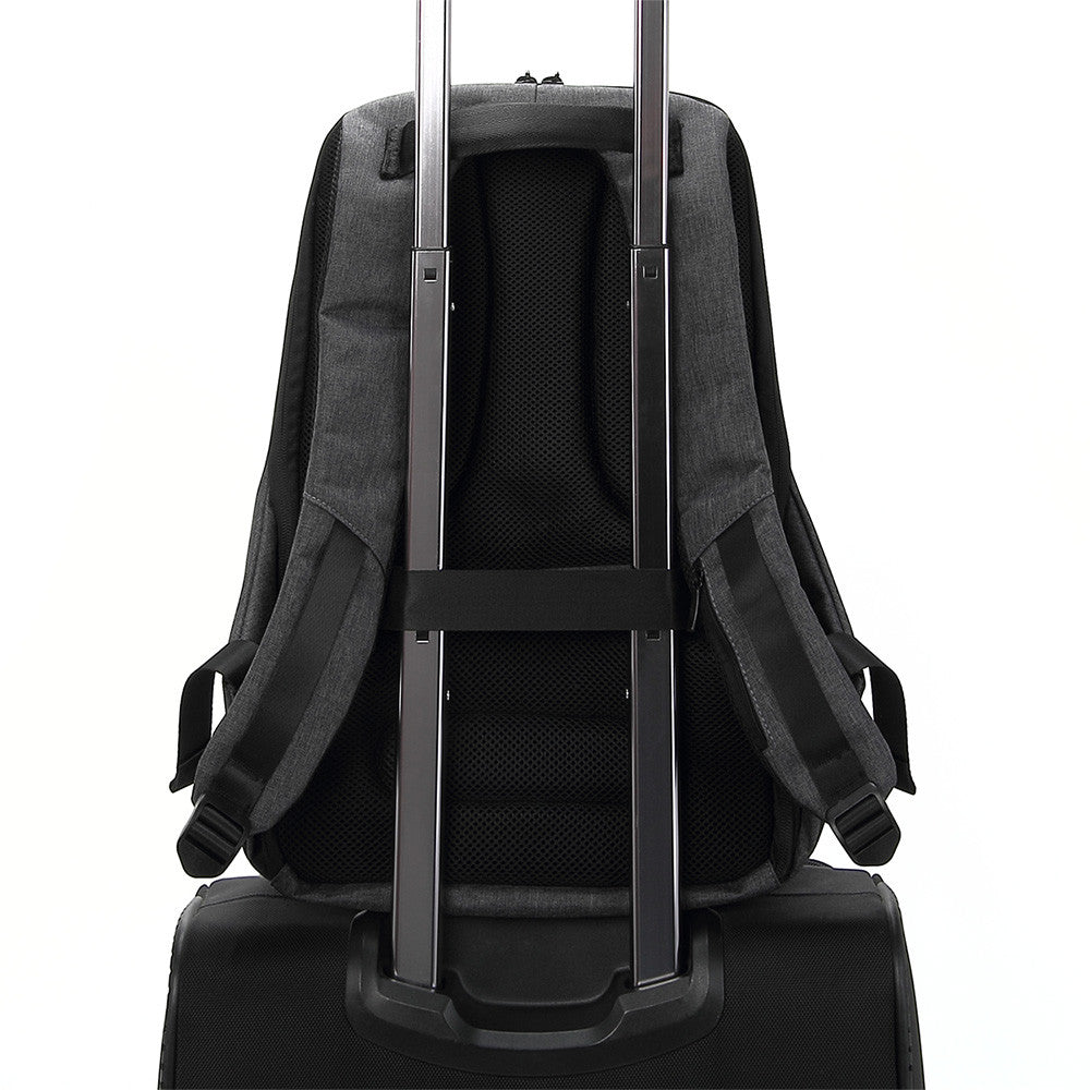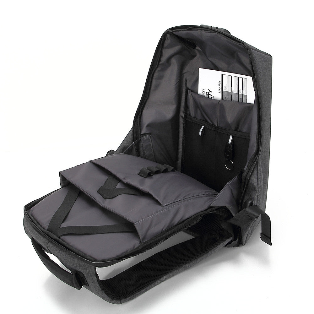 - Esta mochila en color gris oscuro de diseño antirrobo contiene na combinación de cierre de cremallera para mantener seguros sus artículos personales.