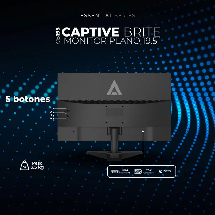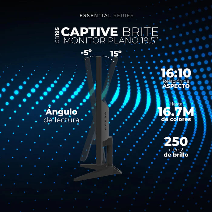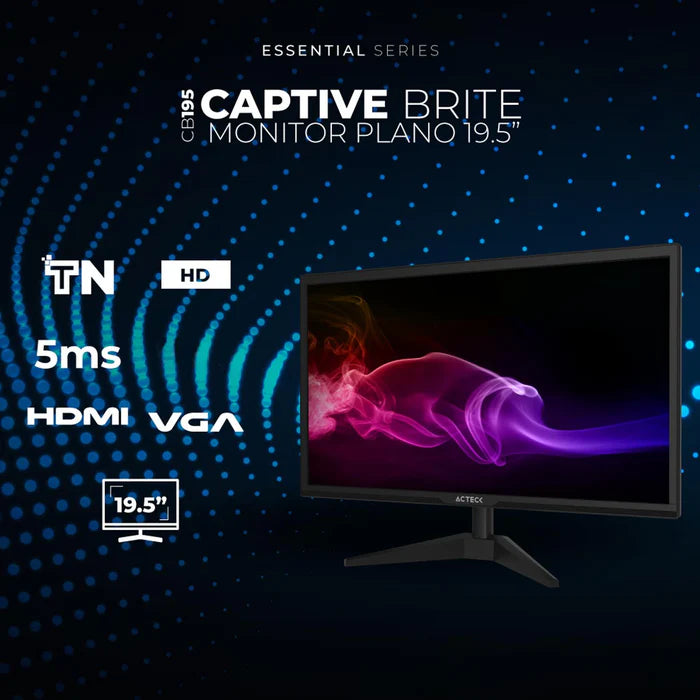 El Monitor CAPTIVE BRITE CB195 ofrece una experiencia de visualización nítida y fluida gracias a su tiempo de respuesta rápido y su resolución HD. Ideal para tareas cotidianas, trabajo remoto o entretenimiento.