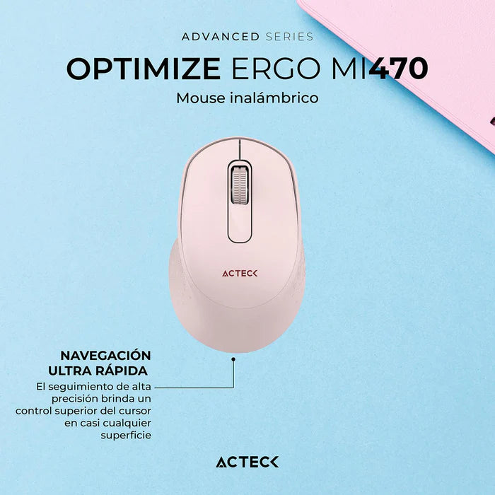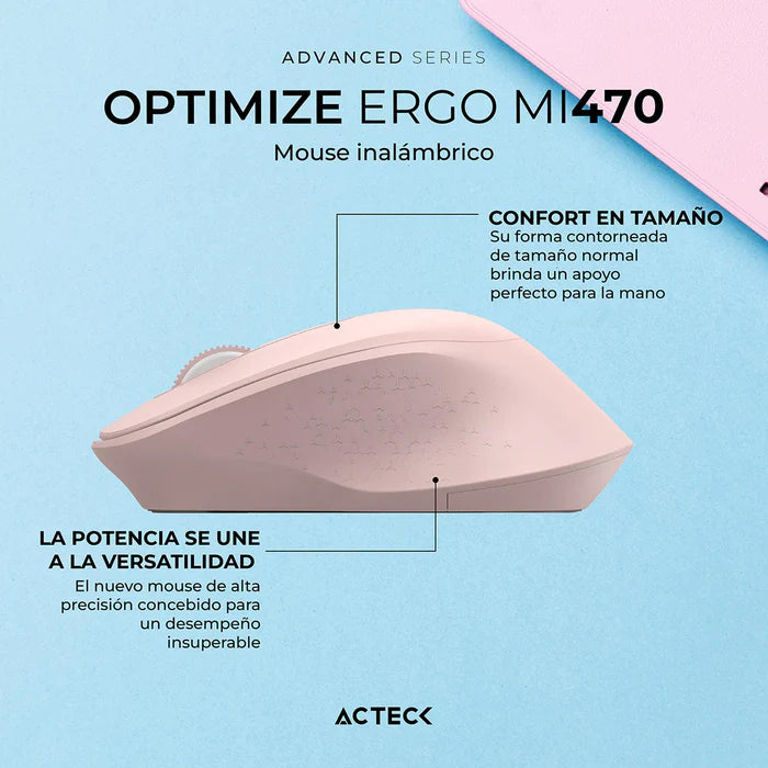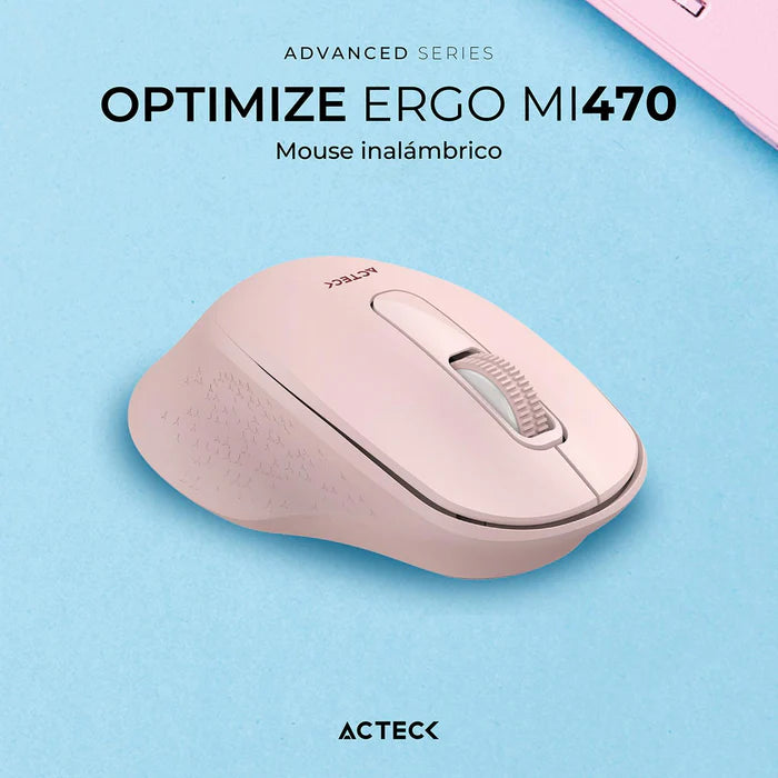 Mouse Acteck Optimize Ergo Mi470, Inalambrico, Receptor Usb, Optico 1600 Dpi Ajustable 2 Botones, Ergonomico, Click Silencioso - Rosa AC-939881