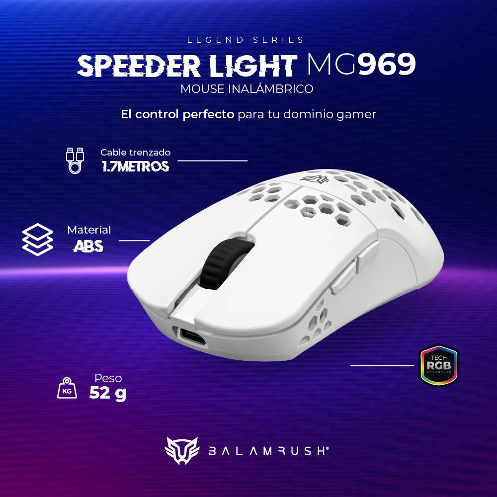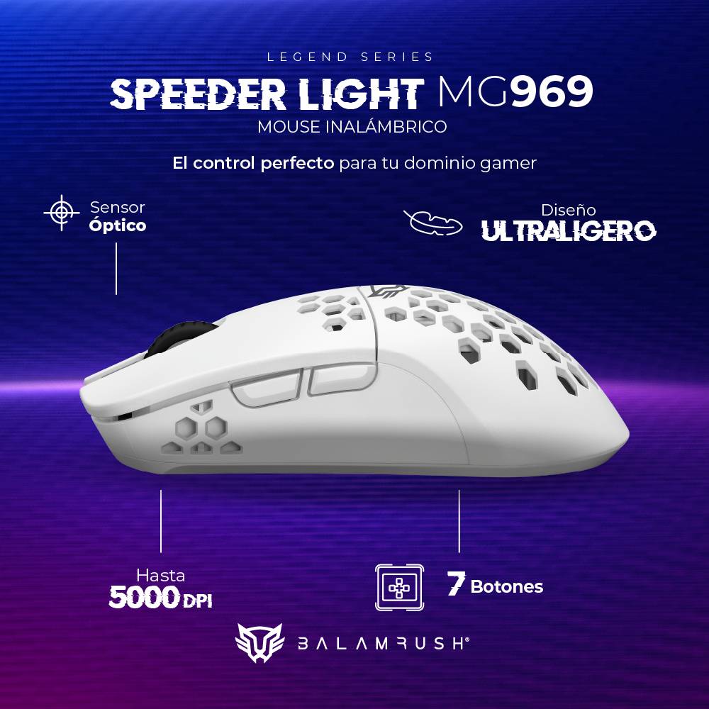Mouse Gamer Inalámbrico Ultra ligero Speed Light MG969 Balam Rush Conexiones Bluetooth - 2.4ghz y USB, 7 Botones, Scroll tipo HUANO, DPI 800 a 5000. Ilumina
