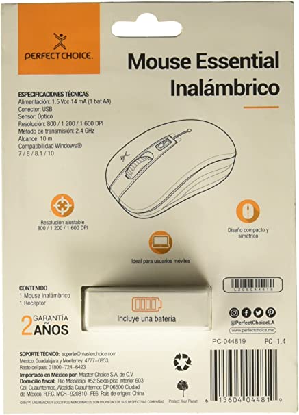 ALIMENTACION 1.5 VCC 14MA 1 BATERIA AA CONECTOR USB SENSOR OPTICO RESOLUCION 800/1 200/1 600 DPI ALCANCE 10M COMPATIBILIDAD WINDOWS 7/8/8.1/10