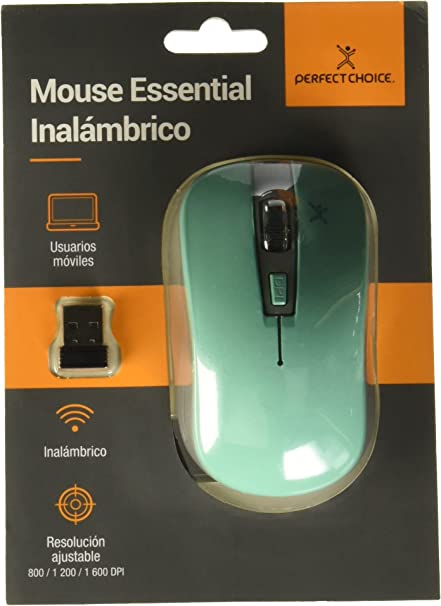 Mouse Optico Inalambrico Essentials 800 A 1600 Dpi Perfect Choice Turquesa