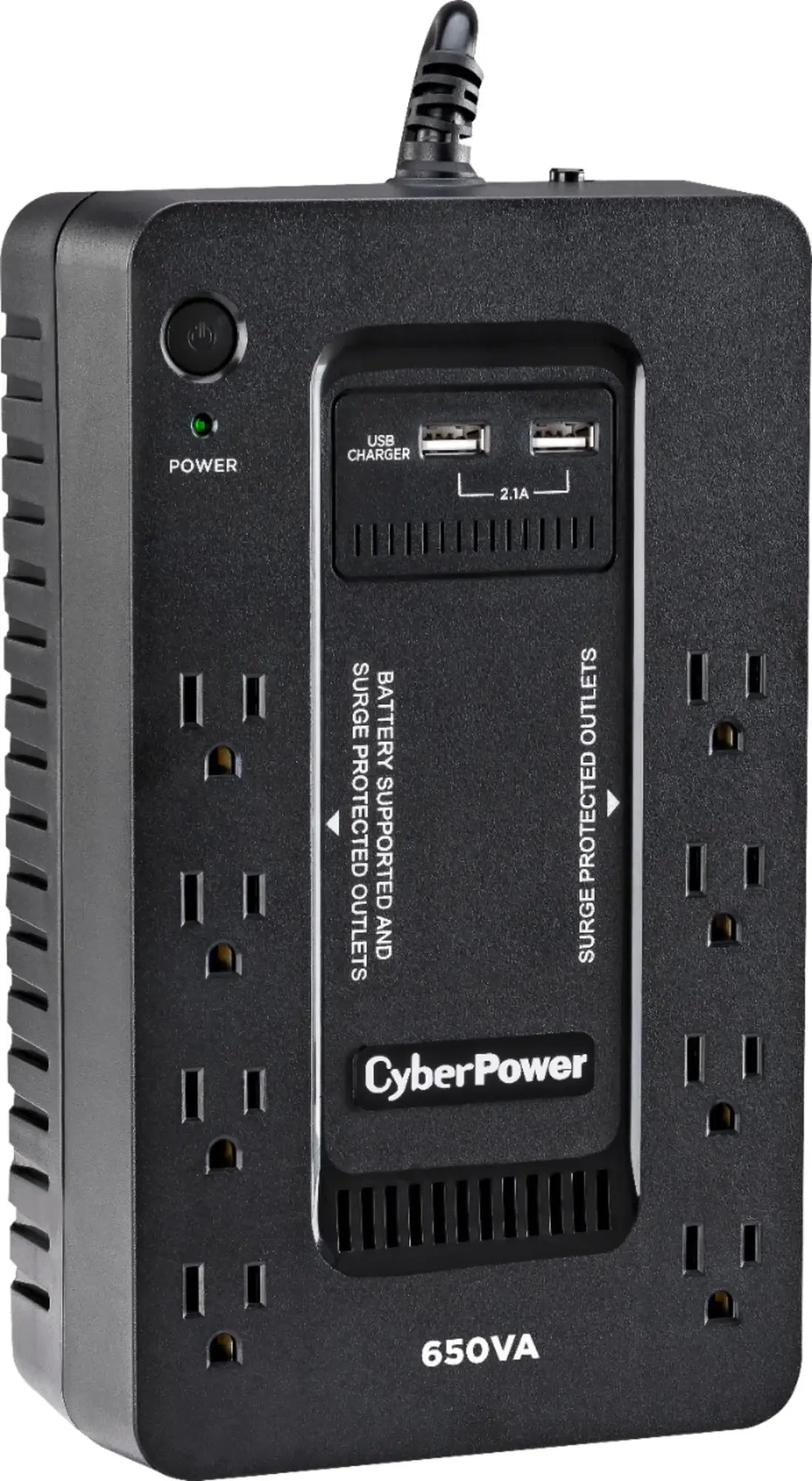 El No Break Cyberpower Sx650u proporciona 650VA/350W y cuenta con 8 contactos para un respaldo de energía confiable.