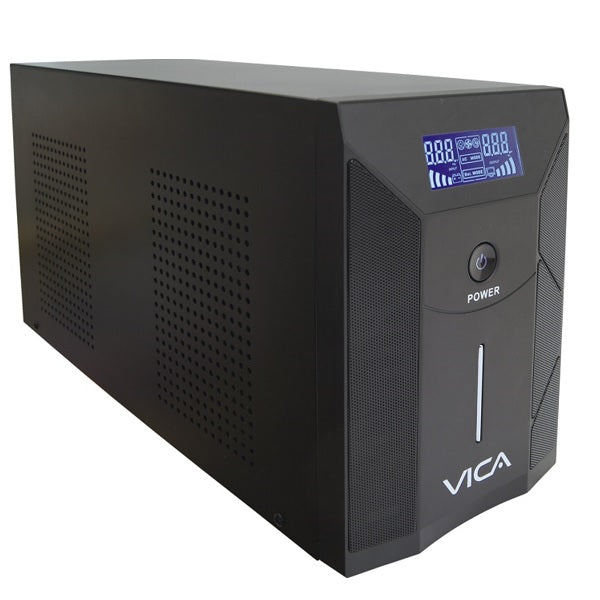 No break con regulador integrado marca VICA modelo S 3000 3000VA/1800W Entrada Voltaje 127VCA, Rango de Voltaje 85-145 VCA, Consumo de energía 15 Ah Rango de Frecuencia entrada 45-65 Hz, Salida Tensión de salida en modo batería 120VCA +/- 10%, Tiempo de transferencia 2-6 ms, Rango de voltaje de salida 102-132 VCA, Voltaje de salida 120 VCA, batería Tipo y número 12Vcc/9Ahx4, Tiempo de carga 60 a 120 minutos/90% de carga, Forma de onda PWM (Modo batería), Número de tomas 8 tipo NEMA 5-15R, Protección de línea RJ45, Software inteligente de monitoreo a través de puerto USB, Indicadores visuales en pantalla LCD, Protección contra sobrecarga Breaker Térmico, Peso (Kg) 20, Dimensión (mm.) (Largo x Ancho x Alto) 380x144x210, Normas aplicables NOM 001-SCFI-1993.