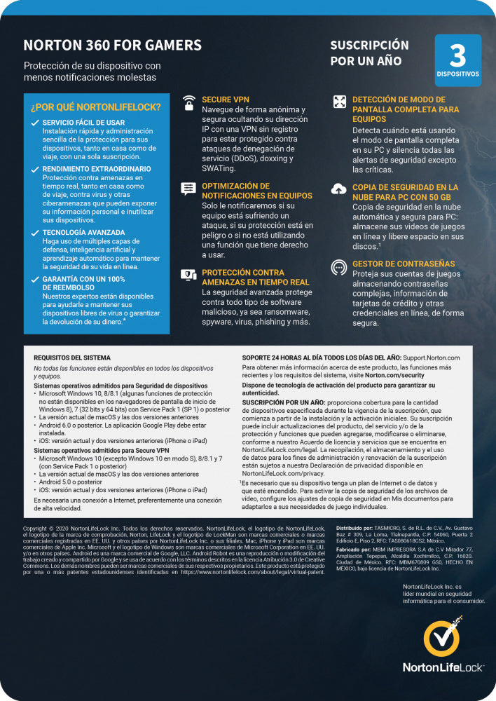 NORTON 360 FOR GAMERS / TOTAL SECURITY 3DV 1YR (TMNR-023)