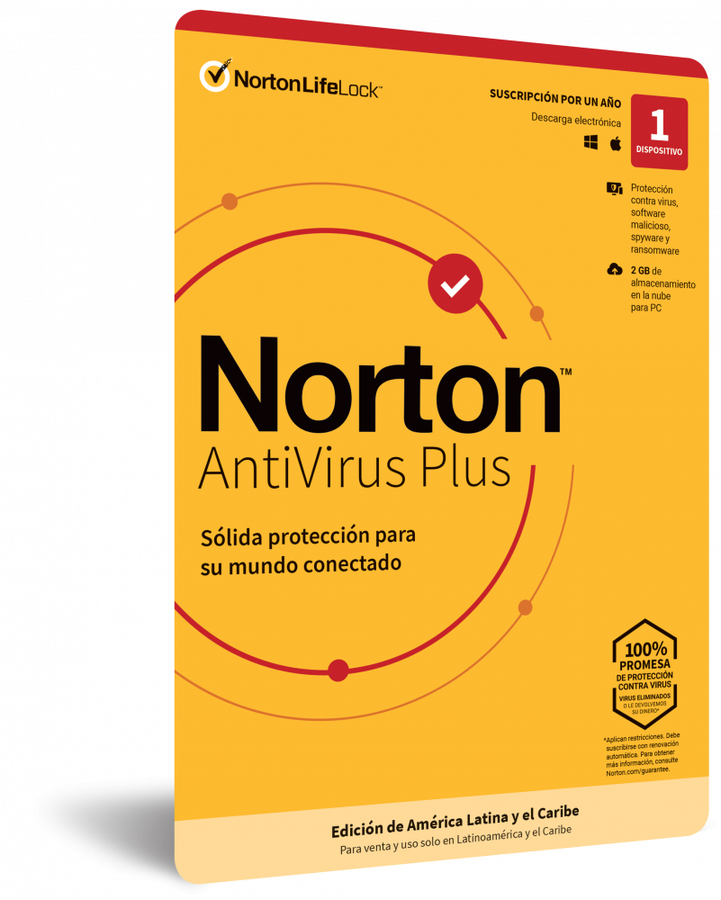 | Norton AntiVirus Plus es ideal para una PC o Mac. Proporciona protección en tiempo real contra software malicioso, spyware, ransomware, ataques de phishing y otras amenazas en línea. Está diseñado para proporcionar varias capas de protección para su PC o Mac, incluida protección mediante firewall. Con el Gestor de contraseñas, genere, almacene y sincronice todas sus contraseñas para iniciar sesión en cualquier sitio de manera más segura. No se conforme con menos. Obtenga ya mismo protección avanzada y mucho más. |