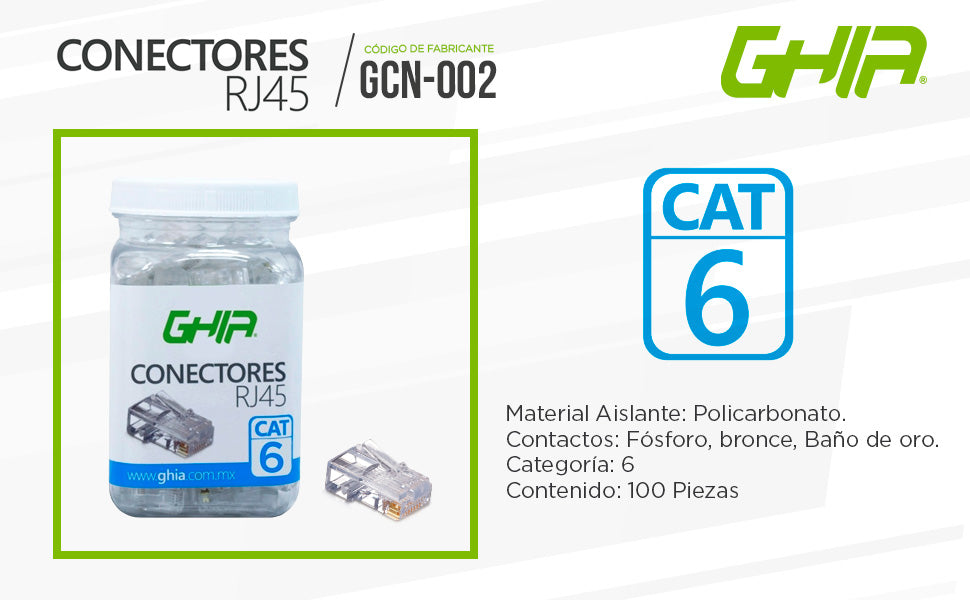 Plug Rj45 Cat6 Ghia Utp 100 Pzas