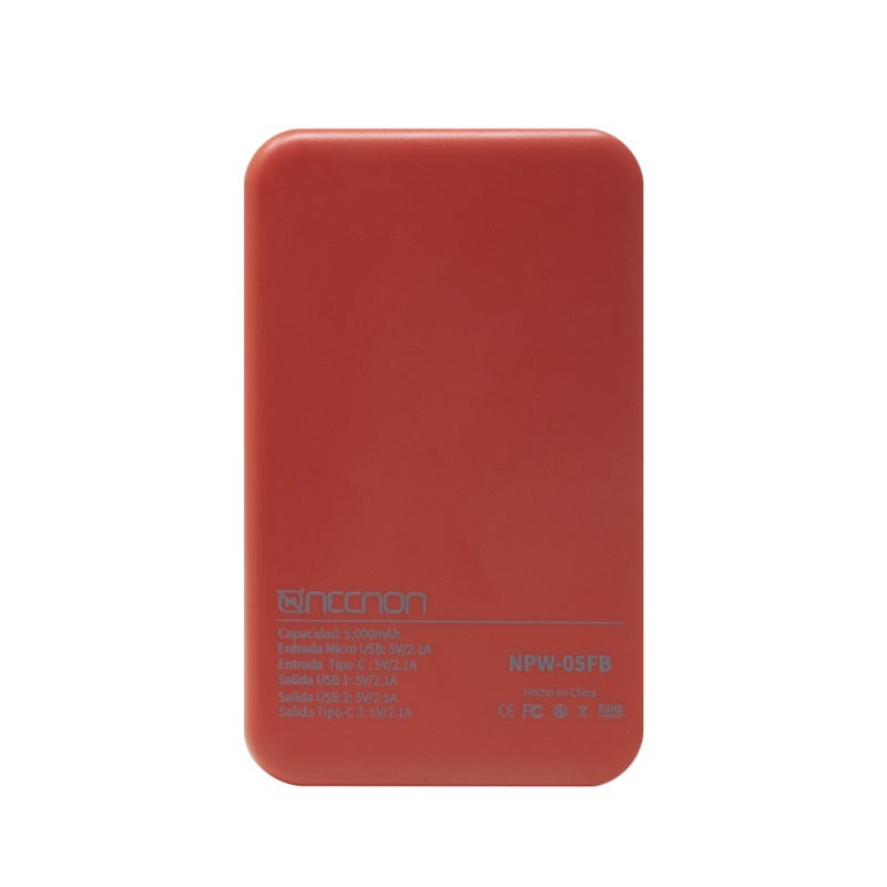 Powerbank Necnon Npw-05Fb 5000Mah Tipo C Rojo Nbpb0502Fb
