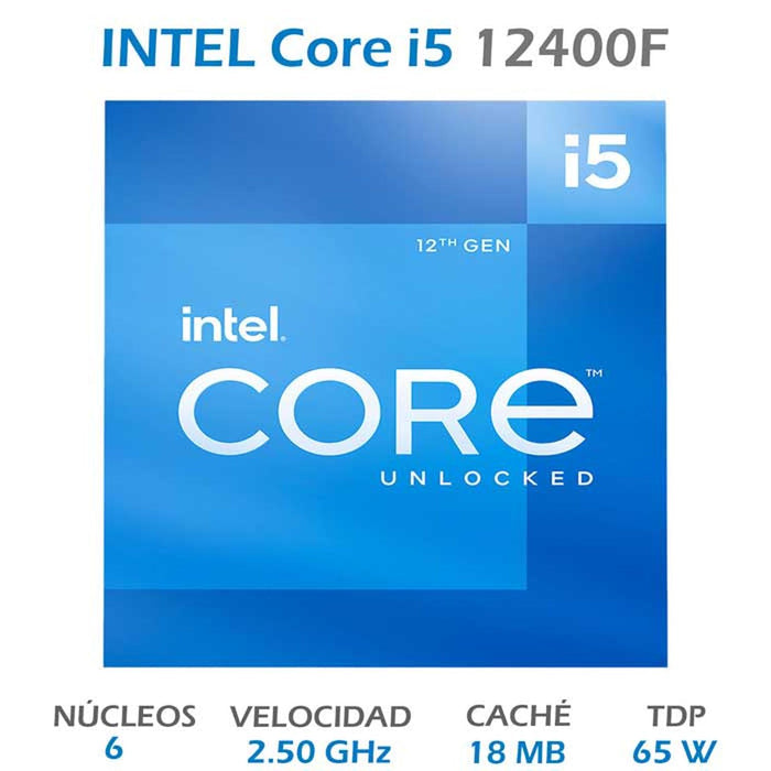 Aumente su productividad, juegos y experiencias de creación de contenido con el procesador Intel Core i5-12400F, con 6 núcleos de rendimiento de 2.5 GHz.