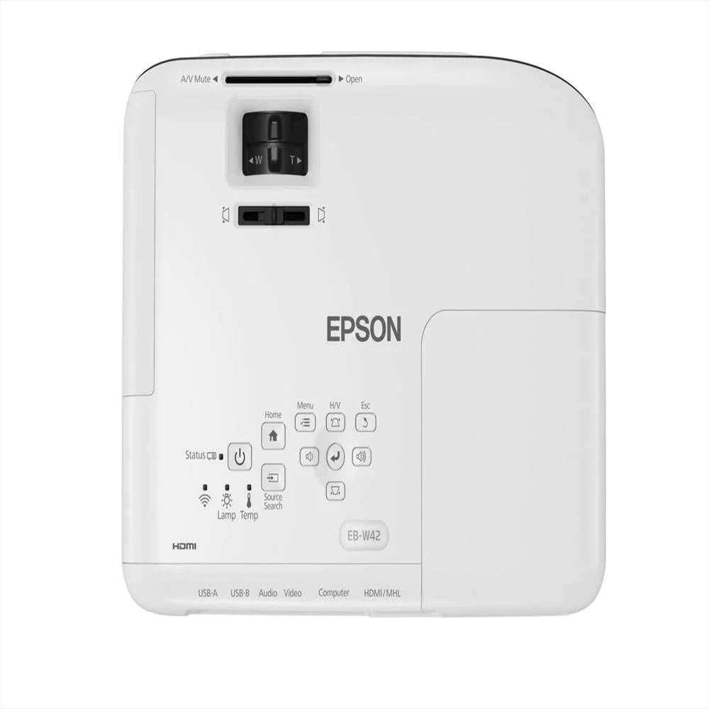 Excelente calidad: resolución nativa WXGA (1.280 px x 800 px). Ideal para presentaciones multimedia. · · · Conectividad inalámbrica: para dispositivos móviles a través de Epson iProjectionTM. Experiencia al natural: colores hasta 3 veces más brillantes2 . La tecnología 3LCD permite un balance más exacto entre la luz blanca y la de color, para proyecciones realmente naturales. · Lámpara con una duración hasta de 12.000 horas3 . Ajustes de imagen simples e instantáneos: facilidad de uso del videoproyector, diseñado con el usuario en mente