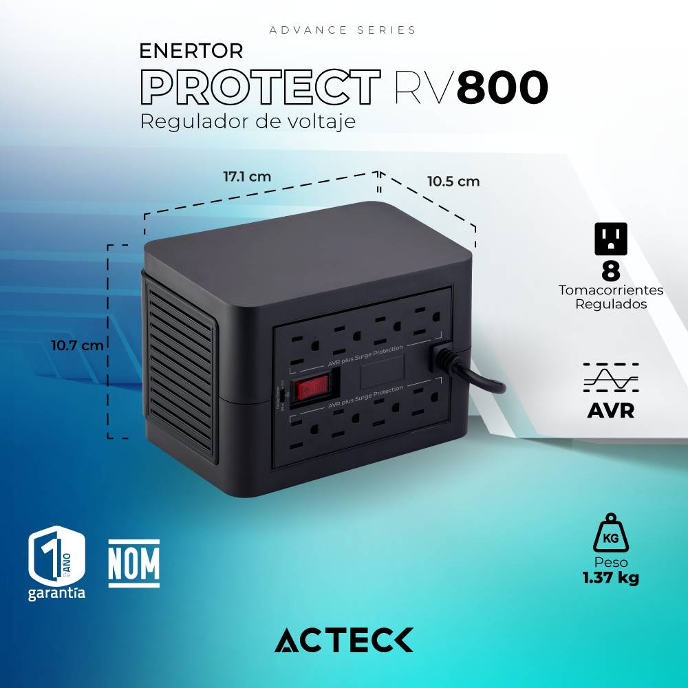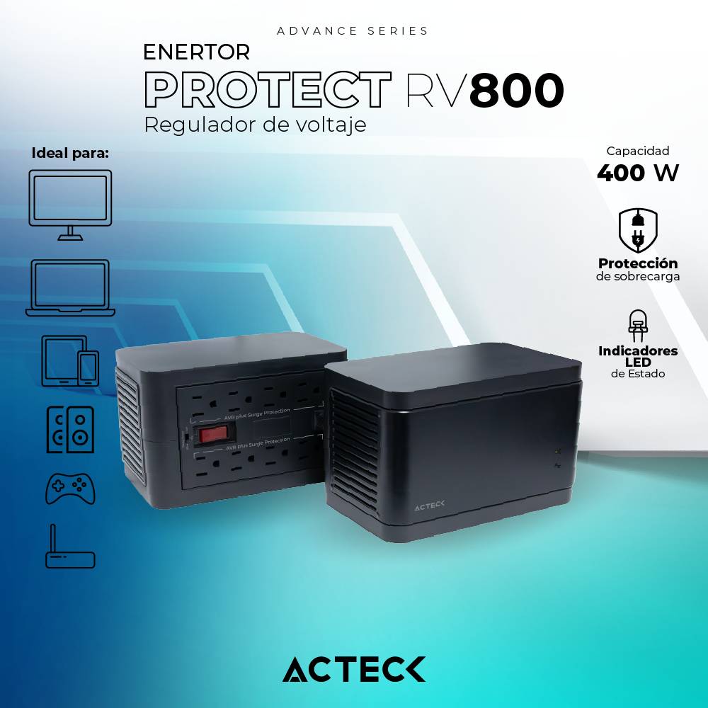 Regulador de Voltaje ENERTON PROTECT RV800 ACTECK Advance Series -