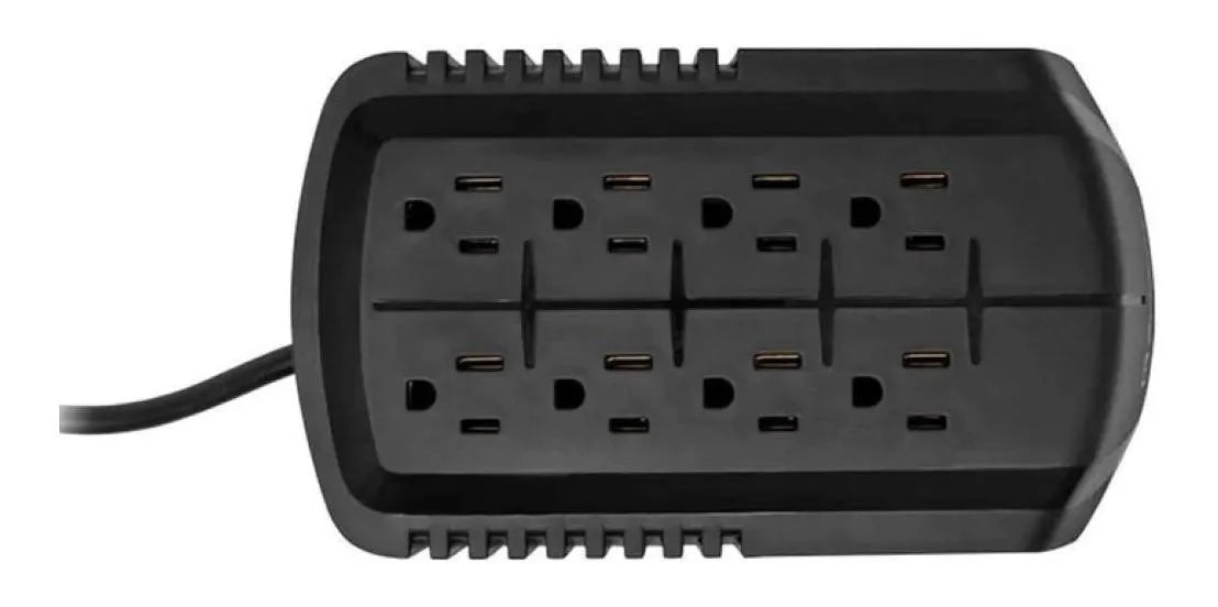Regula voltajes entre 95 y 145 V con supresión de picos de 134 joules.