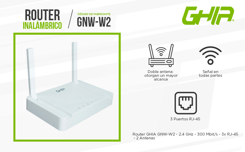 Router Inalambrico Ghia Compacto 300mbps 802.11n/G/B Multimodo Access Point Repetidor Wisp 3 Puertos Lan 10/100 1 Puerto Wan 10/100 2 Antenas Fijas Externas 5dbi