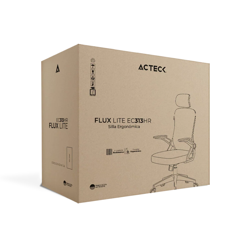 La Silla Flux Lite EC313HR combina estructura en PP con respaldo de malla gris y espuma super suave, todo sobre un marco blanco elegante. Incorpora pistón clase 2 con capacidad de hasta 100 kg, mecanismo mariposa que permite inclinación hasta 120° y reposabrazos abatibles a 90°, ideal para adaptarse a tu espacio y ritmo de trabajo.
