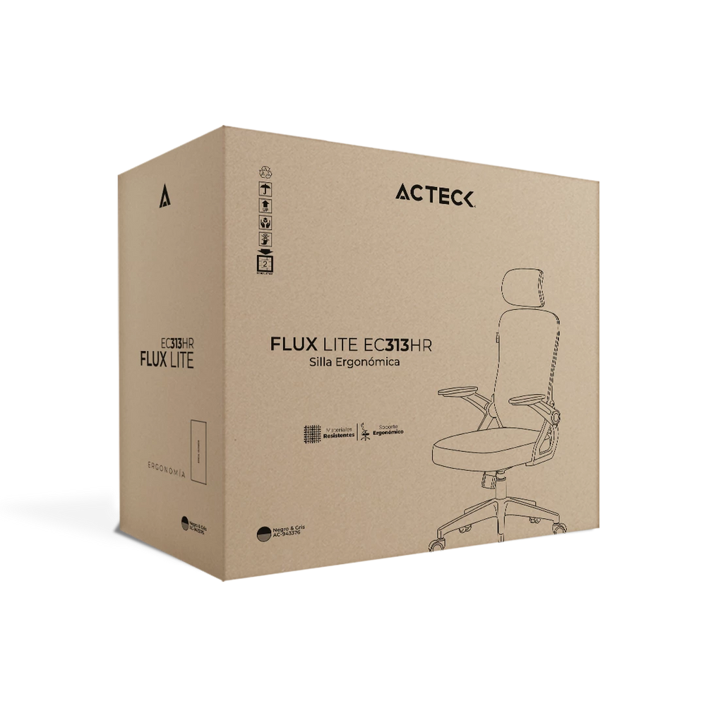 La Silla Flux Lite EC313HR combina estructura en PP con respaldo de malla gris y espuma super suave, todo sobre un marco blanco elegante. Incorpora pistón clase 2 con capacidad de hasta 100 kg, mecanismo mariposa que permite inclinación hasta 120° y reposabrazos abatibles a 90°, ideal para adaptarse a tu espacio y ritmo de trabajo.