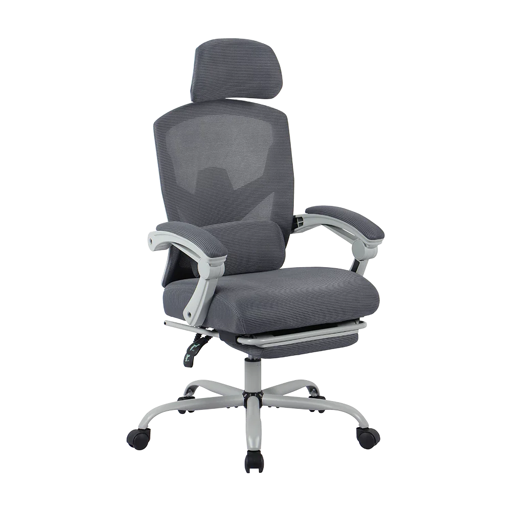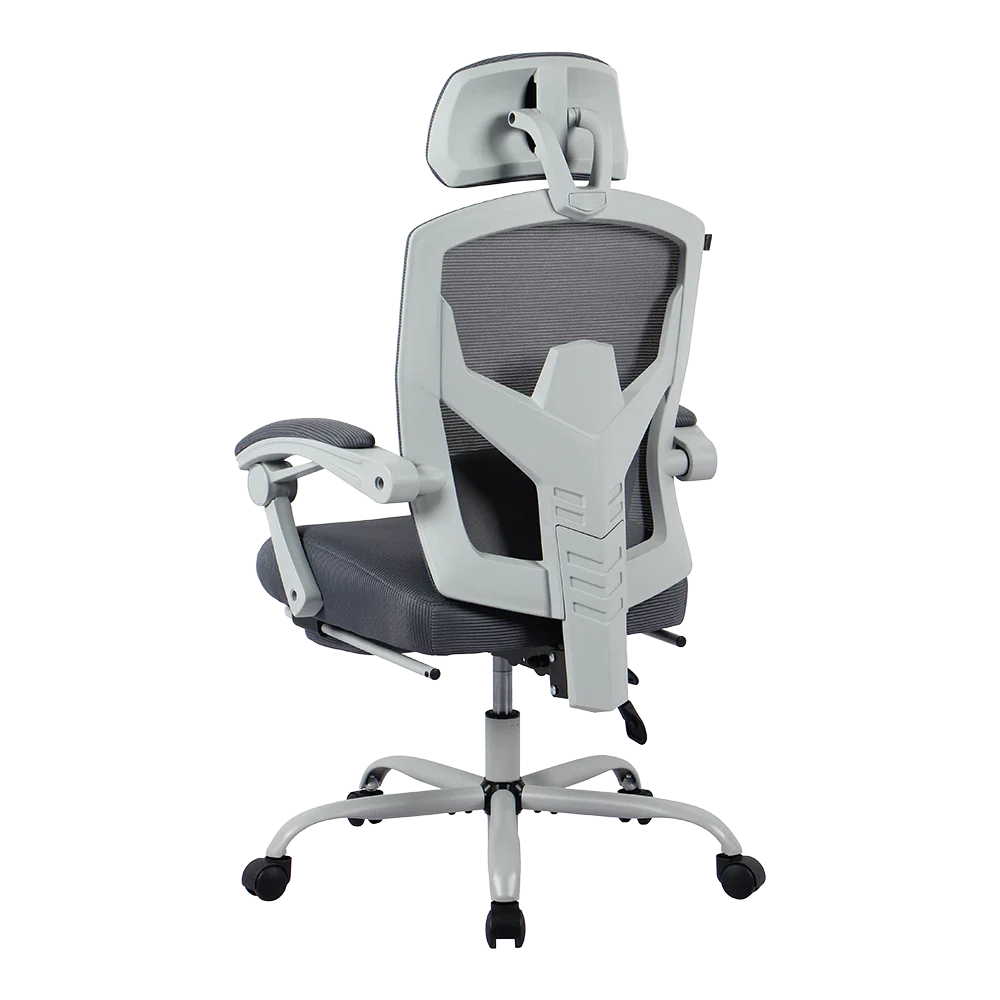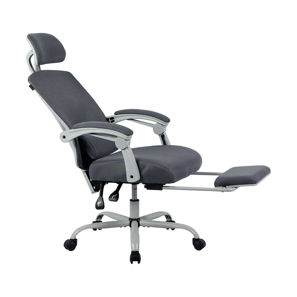 Silla Gamer Bolt Nou W | Azender Gris | Malla Transpirable + Espuma Confort | Soporte 130 kg | Inclinación 140° | Reposabrazos Fijos + Reposapiés + Cojín Lumbar | Pistón Clase 3