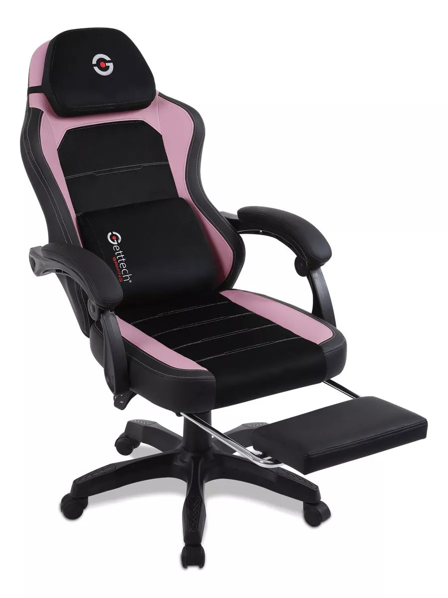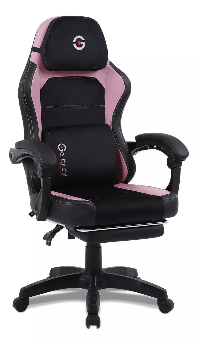 Silla Gamer Getttech Rosa Y Negro Soporte Para Reposapies (Gar-Gaopy-G2-Pk)
