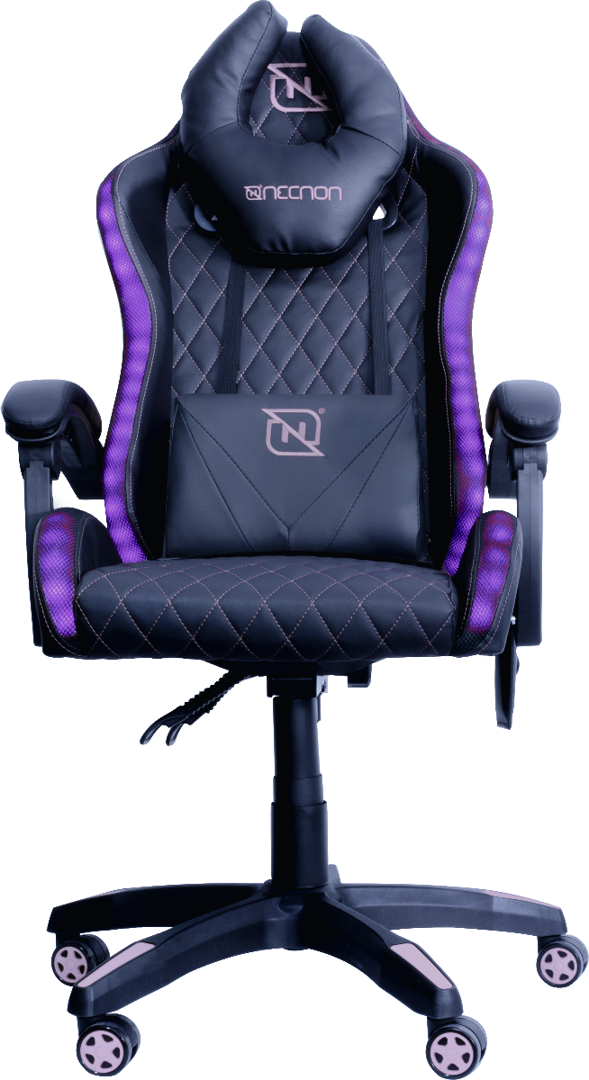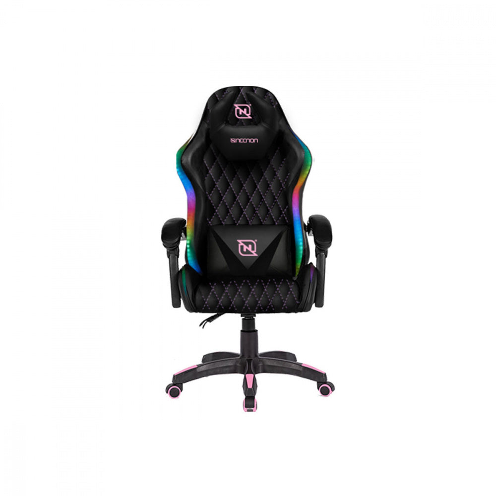 Silla Gamer Nencon Nsg-Rgb1 Foam Rgb 140-150kg Con Lumbar Y Cabeza, Negro Y Rosa