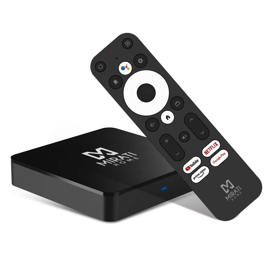 Mirati tv box con android tv, el camino mas sencillo para disfrutar del entretenimiento que amas, el stream favorito de las apps mas populares, reproduce musica y juegos, transmite tu contenido desde cualquier dispositivo, descarga miles de apps desde la play store de google, y mucho mas (4 años de actualizaciones de sistema por google). Totalmente compatible con google assistant y todo el ecosistema smart de mirati home: enciende y apaga tus focos inteligentes, cambia el color de la iluminación, ajusta la temperatura del aire acondicionado inteligente y cualquier otro dispositivo smart compatible, simplemente utilizando comandos de voz en el control remoto de tu tv box mirati home.