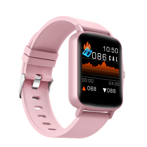 Con un grosor de solo 1.08 cm y peso ligero de tan solo 90 g, el smartwatch viene en color rosa y tiene una banda ajustable del mismo tono. Además, cuenta con funciones como monitorización del sueño, sensor de oxígeno en la sangre y monitorización continua del ritmo cardíaco.