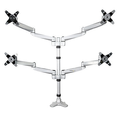 Soporte De Escritorio Para 4 Monitores De Hasta 27 Vesa - Base Articulada Con Pantallas De Total Movimiento - Plata - Startech.Com Modelo, Armquadps