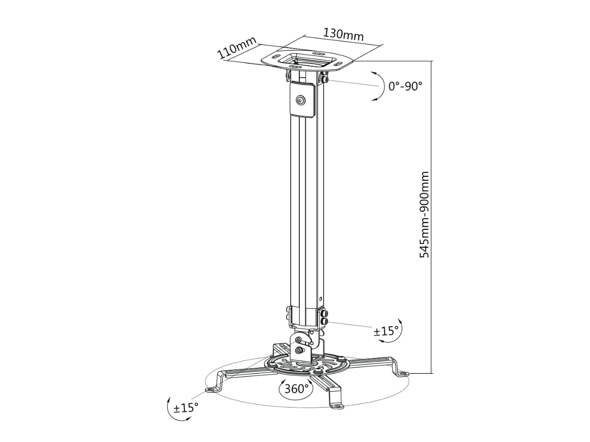 Soporte de proyector OVALTECH OVPR-900MM de 545-900MM / 360 Grados (Resistencia 13.5kgs)