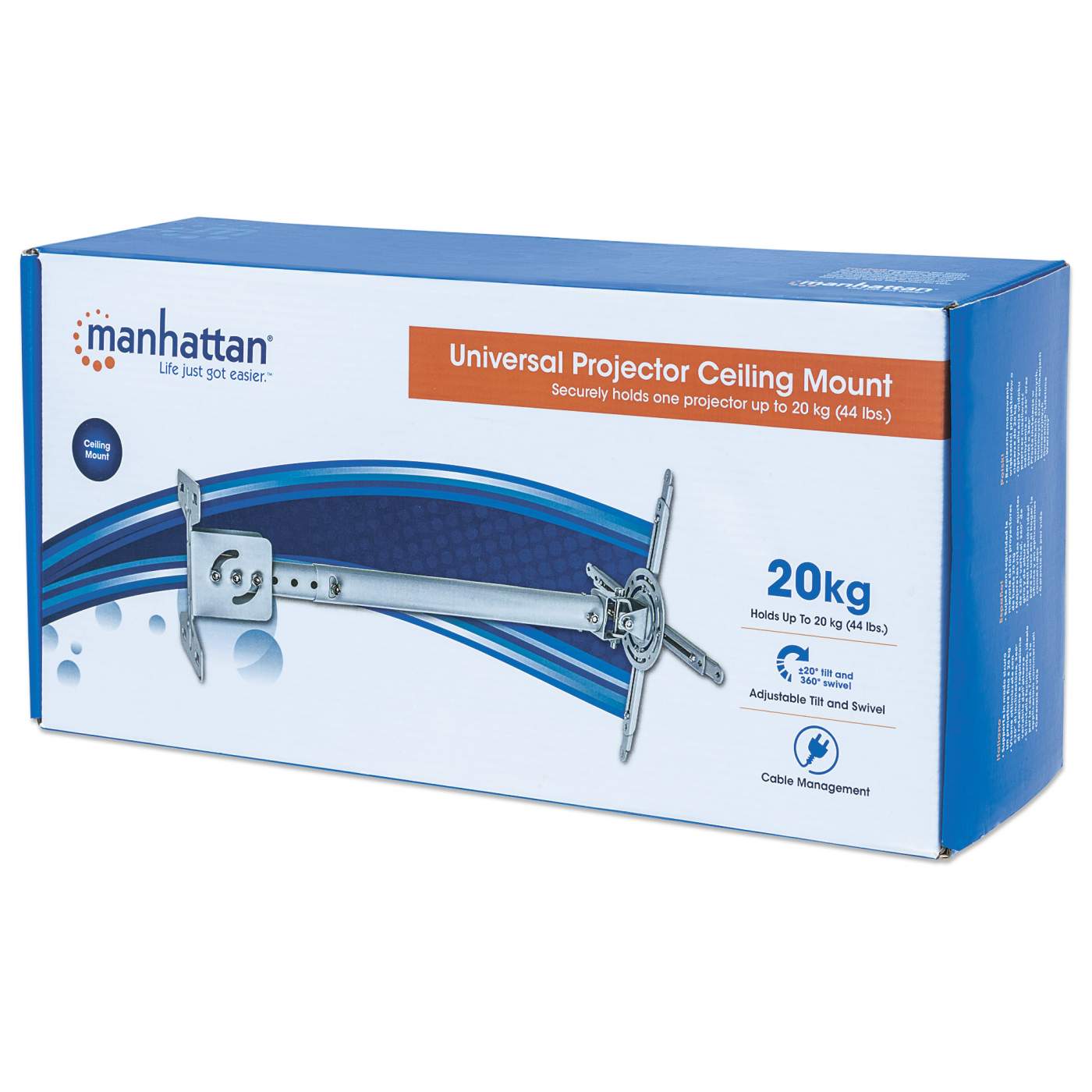 Instale fácilmente un proyector y manténgalo la posición ideal. Los Montajes Universales en Techo para Proyector MANHATTAN mantienen los proyectores estables y con la inclinación exacta, ajustes giratorios de 360° y de altura que mantienen imágenes claras y definidas. Construidos con material de aluminio de alta calidad, los Montajes Universales en Techo para Proyector MANHATTAN se ajustan a una amplia gama de modelos con una instalación superior segura, confiable y equilibrada. Los administradores de cable cubren las conexiones para dar un terminado con aspecto profesional. Es ideal para el cine en casa, el auditorio, la oficina, la ventas al por menor, la sala de clase, las video conferencias y otros usos comerciales, los Montajes Universales en Techo para Proyector MANHATTAN mantienen la atención enfocada en lo que más importa.