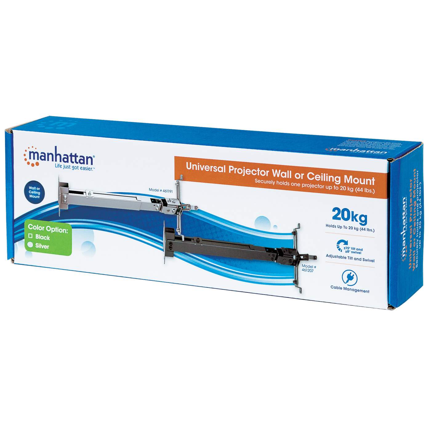 Está fabricado con materiales ligeros y de gran calidad, los Montajes Universales Manhattan de Techo y Pared para Proyectores funcionan con un amplio rango de modelos con una instalación segura, confiable y equilibrada en techos o muros. En algunos casos, su administrador interno de cables ayudan con los desagradables cables y conexiones, para una apariencia profesional.